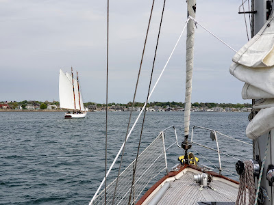 Wir müssen aufmerksam Ausschau halten, denn hier liegen mal wieder jede Menge Hummertöpfe, in denen wir nicht hängenbleiben wollen. Einmal reicht uns... Insgesamt sind wir sehr zufrieden. alle notwendigen Systeme arbeiten gut. So erreichen wir nach rund 20 abwechslungsreichen Meilen die Ansteuerung nach Newport und hier wird es unangenehm, denn es steht Wind gegen Strom - hohe Wellen und keine Fahrt im Schiff ist keine gute Kombination, so dass wir die Maschine anwerfen.