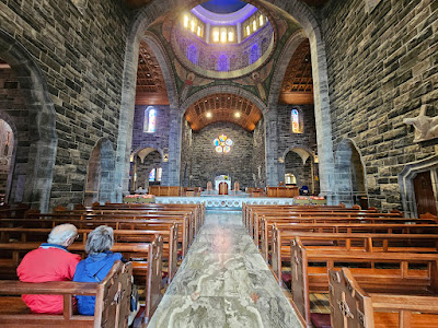 Gestern war gutes "Museumswetter", aber heute haben wir strahlenden Sonnenschein - optimal für Outdoor-Aktivitäten. Zunächst ist aber nur Ralf unterwegs, der mit dem Fahrrad zum Segelmacher fährt. Dort hat ein Mitarbeiter der Kilrush Marina unser neues Dampferlich abgegeben, das nicht mehr rechtzeitig vor unserem Aufbruch angekommen war. Währenddessen nutze ich die Gelegenheit für ein paar Verwaltungsarbeiten und Telefonate. Dann brechen wir gemeinsam zu einer Radtour auf. Unser erstes Ziel ist die "Galway Cathedral (siehe Titelbild). Der Weg führt am Ufer des Corrib entlang und ist wunderschön. Viele nutzen die Gelegenheit und entspannen sich gemütlich auf der Wiese.Die Kathedrale selbst (vollständiger Name: "Cathedral of Our Lady Assumed into Heaven and St Nicholas") sieht zwar historisch aus, ist aber erst 1965 fertiggestellt worden. Sie wurde aus lokalem Kalksandstein errichtet und hat die Form einer klassischen Basilika auf Kreuzgrundriss und vereint verschiedene Baustile: Romanik (Bauform und Bögen), byzantinische Architektur (Kuppel und Mosaiken) und Gotik (Rosetten). Zur Finanzierung wurden jahrelang Spenden gesammelt und auch jetzt ist die Kirche Geldzuwendungen nicht abgeneigt. Leider konnte ich nicht herausfinden, wie hoch der Betrag sein muss, um ins goldene Buch zu kommen, aber wer es geschafft hat, für den wird wöchentlich eine Messe gelesen, solange die Kirche existiert.Es gibt einen kleine Laden direkt in der Kirche, es können - gegen Bezahlung - Kerzen angezündet werden und natürlich ist es auch möglich, online zu spenden... Wir fahren am Kanal zurück Richtung Hafen - auch hier sieht es sehr nett aus.Zurück an der Galway Bay führt uns unser nächster Weg am Ufer entlang in den kleinen Badeort Salthill, der für seine schöne Promenade bekannt ist. Dort und auch am Strand herrscht reges Treiben und wir beobachten fasziniert, dass mehrere Menschen zum Schwimmen ins Wasser gehen. Ralf läuft ein Stück am Strand entlang und berichtet, dass es noch eiskalt ist.Wir fahren den schönen Weg am Meer entlang zurück und - nach einer kurzen Pause - geht Ralf noch unsere Vorräte auffüllen. Hier gibt es Aldi, Lidl und Tesco in der Nähe und mit dem Fahrrad können wir die Einkäufe gut transportieren.Entsprechend gab es zum Abendessen frisches Baguette und Coleslaw. Ich habe noch die Navigation für morgen erledigt, denn wir wollen in die nächste Bucht segeln.